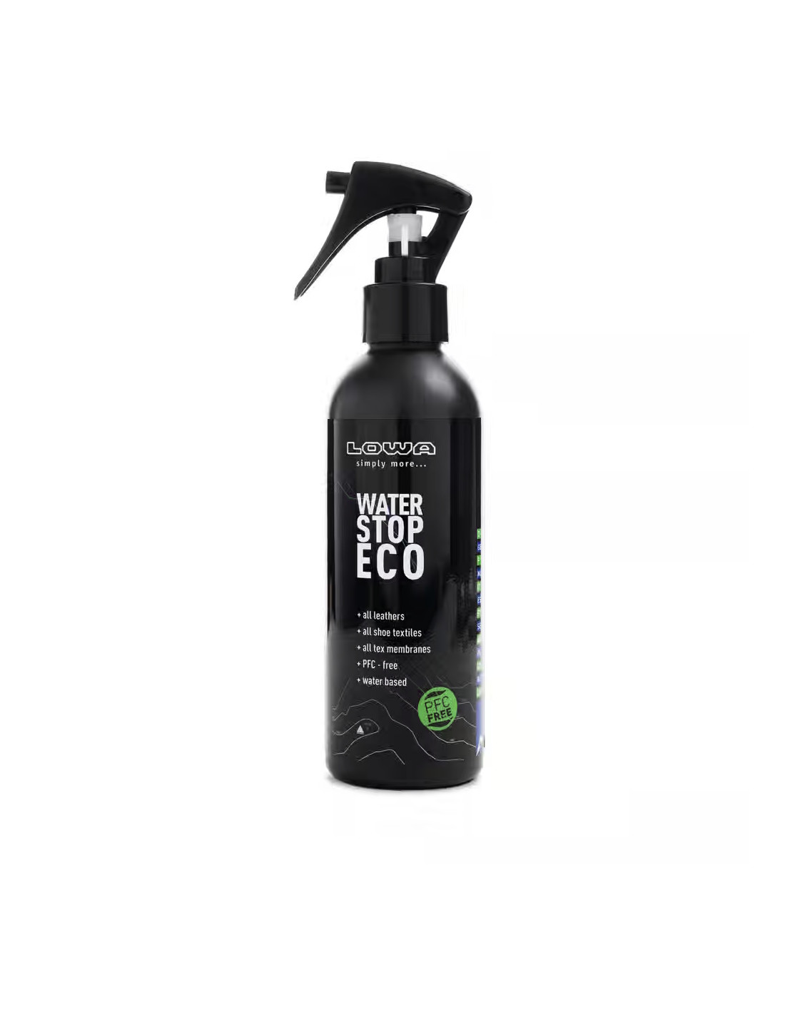 LOWA WATER STOP ECO 200ml est un spray d'imprégnation haute performance à base d'eau, spécialement conçu pour protéger toutes les chaussures tactique, de loisirs, de montagne et de randonnée. Il assure une barrière efficace contre l'eau et la saleté sans altérer la respirabilité des matériaux. Compatible avec les membranes GORE-TEX et autres membranes climatiques, il constitue une solution idéale pour prolonger la durabilité de vos chaussures.