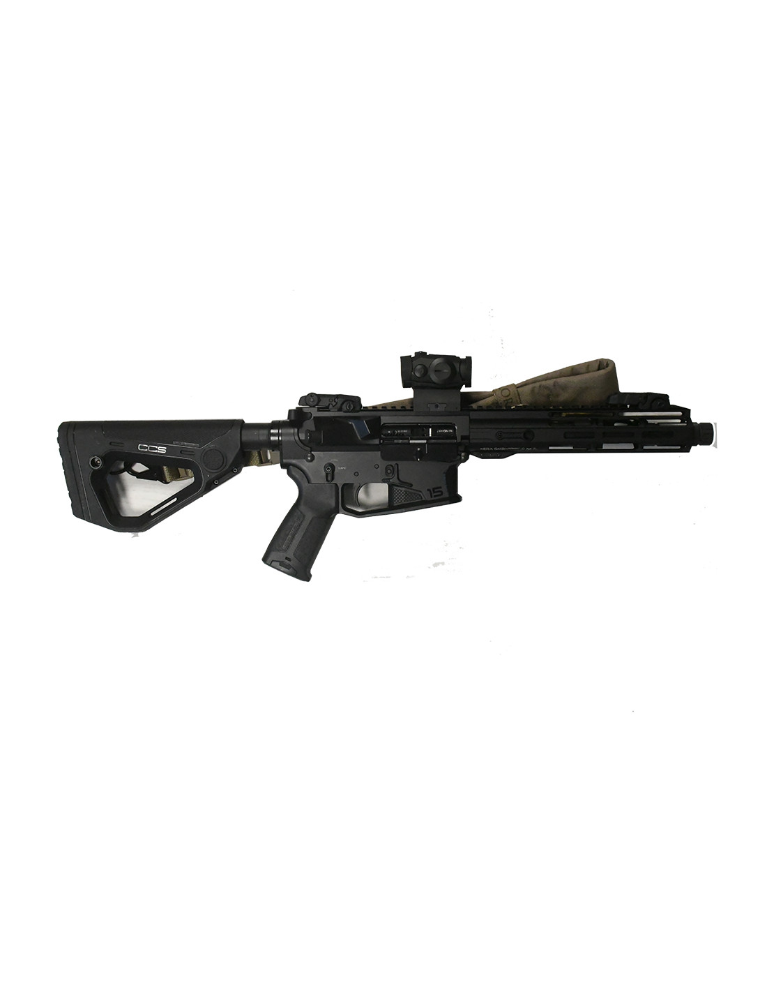 Chambrée en .223 Remington, cette carabine assure un tir précis avec un recul modéré, idéal pour les séances prolongées. Elle est équipée d’un point rouge Sig Sauer Romeo pour une acquisition rapide de la cible, ainsi que de organes de visée rabattables MBUS (flip-up) permettant une solution de secours fiable.