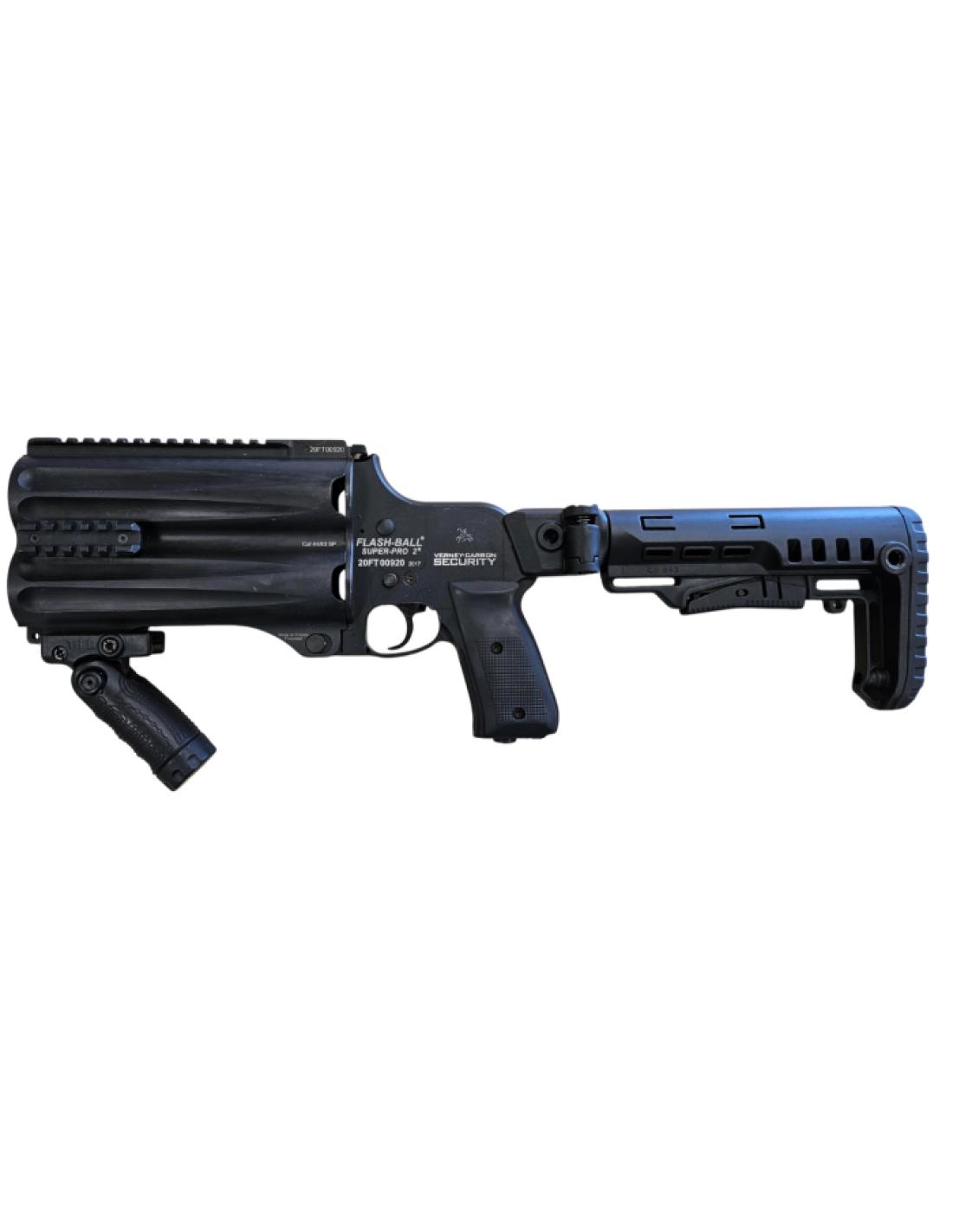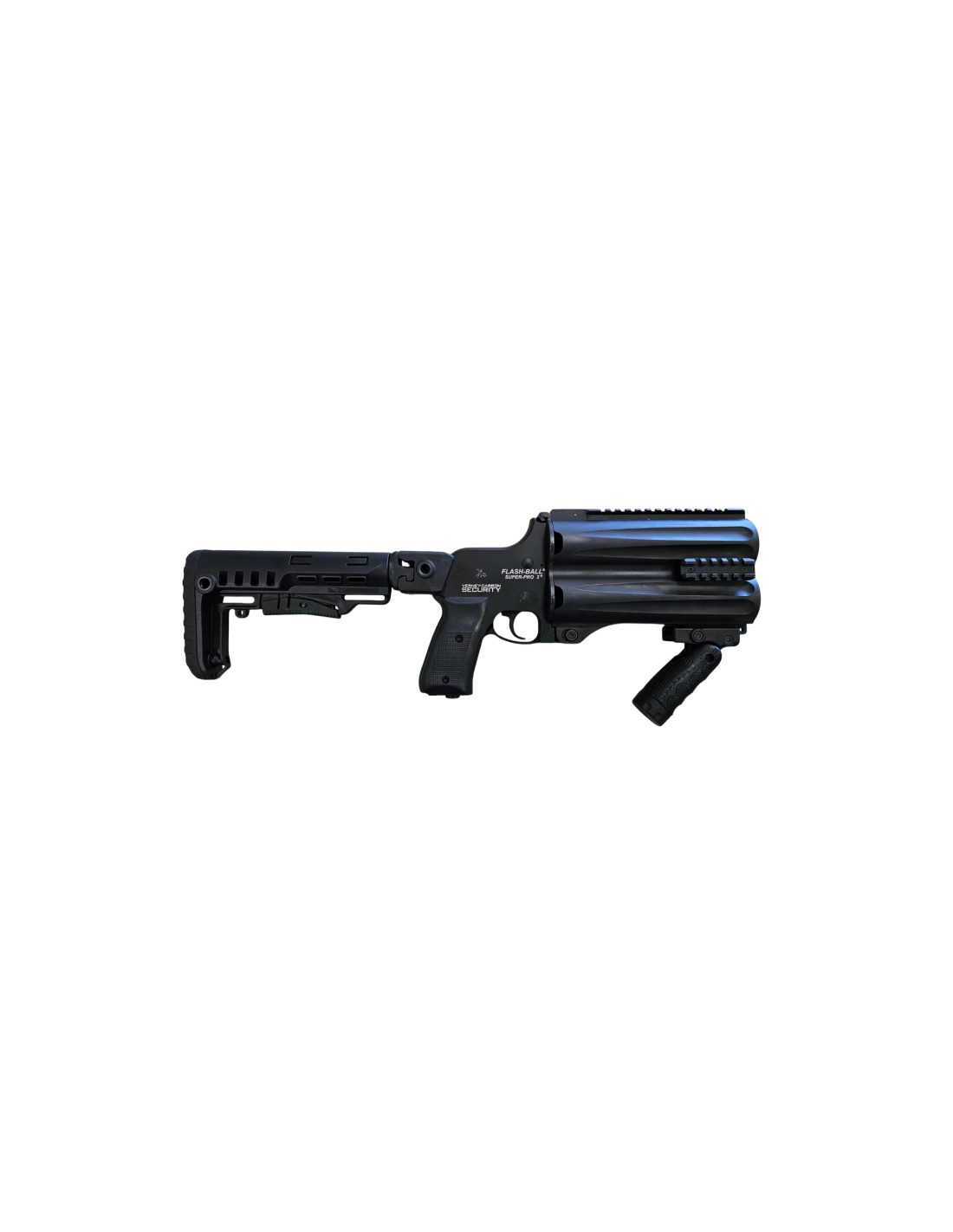 Le Flash-Ball Super Pro Kit V2 de Verney-Carron est une version équipée et polyvalente du Super Pro 2, pensée pour les usages professionnels et la gestion opérationnelle : double canon superposé, rails Picatinny pour accessoires et crosse réglable offrent une solution compacte, robuste et modulable.