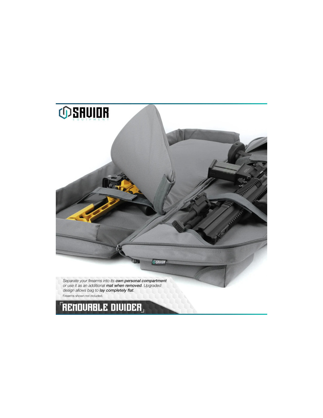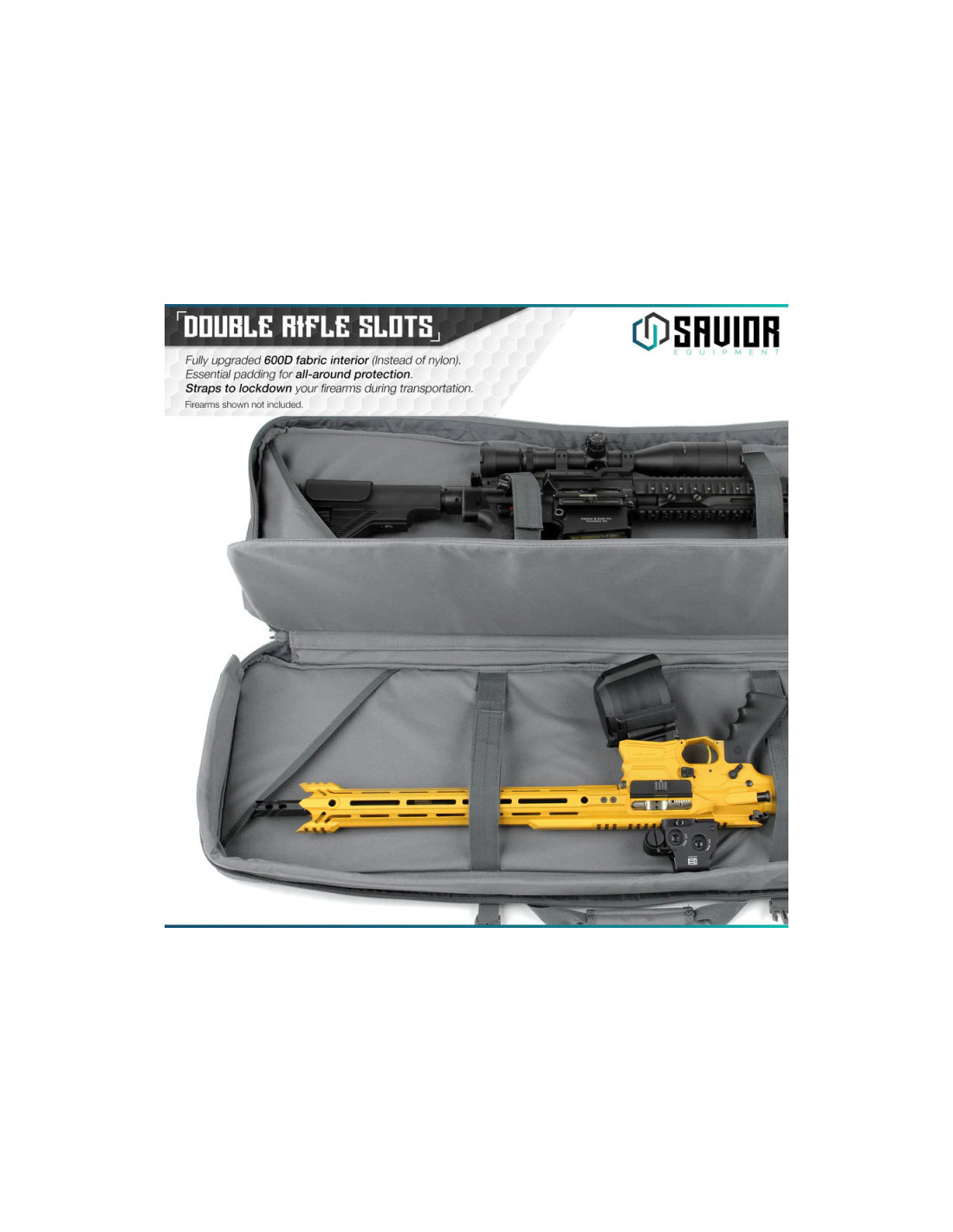 - Capacité : deux compartiments principaux rembourrés pour transporter deux fusils ou carabines.