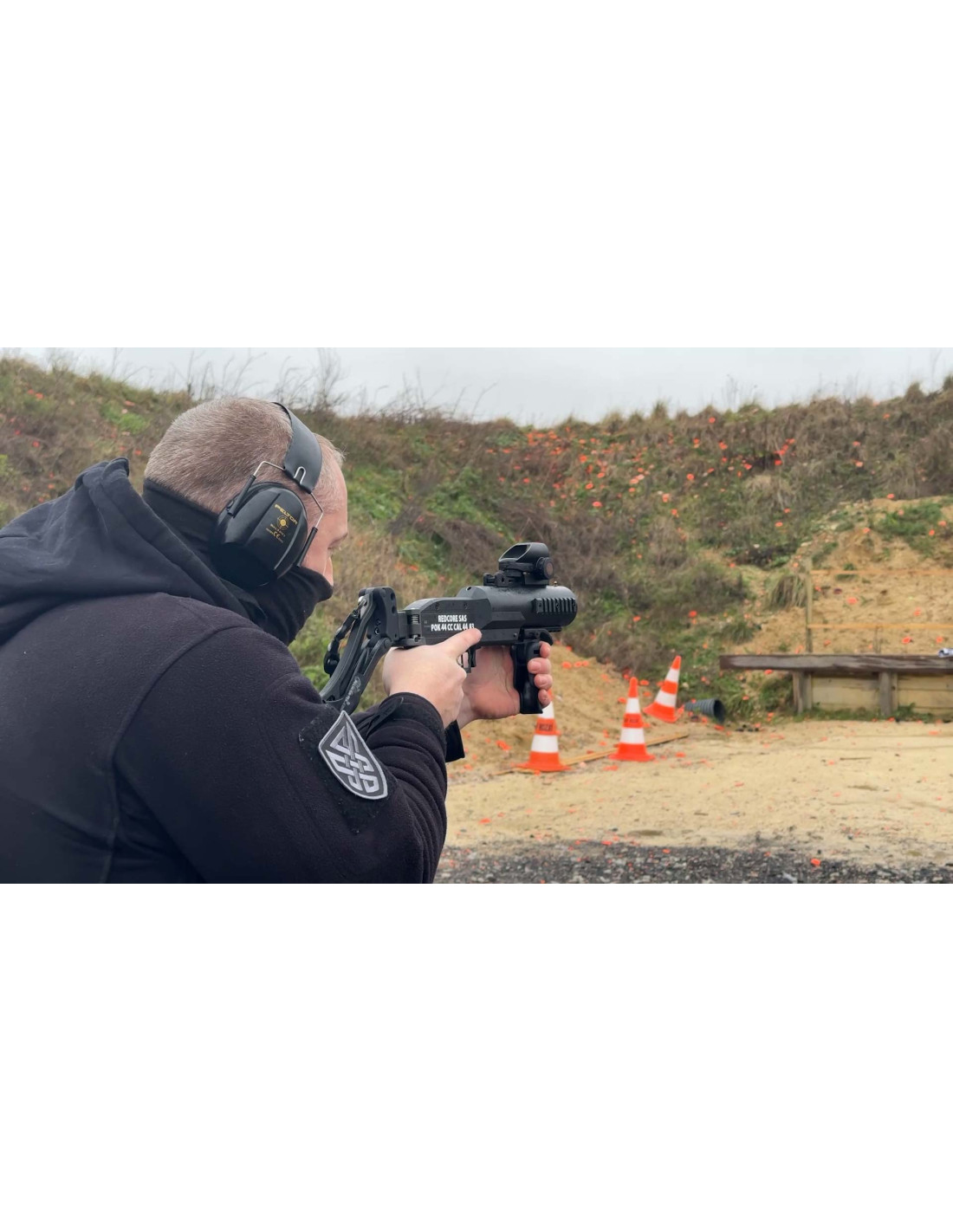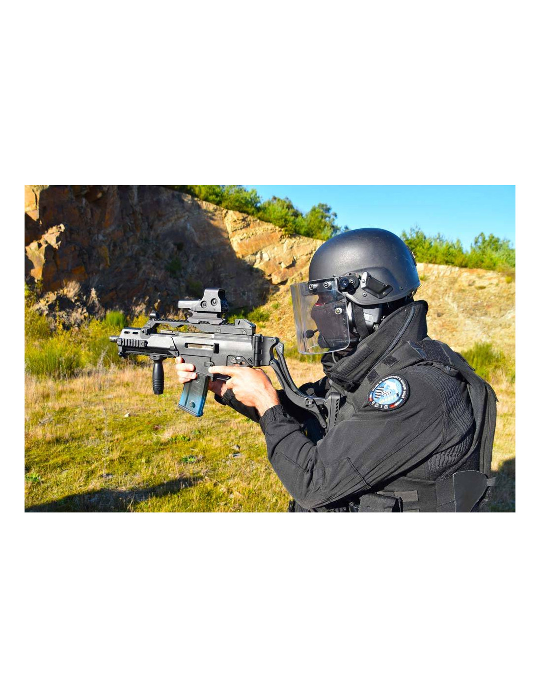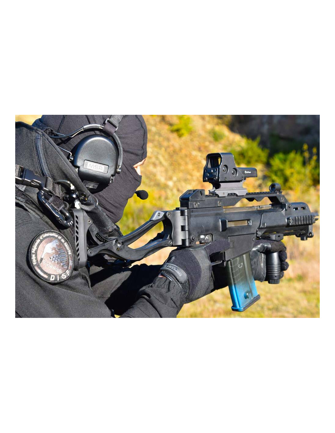 La crosse FRAMM réglable et pliable est spécialement conçue pour s’adapter à la morphologie de l’utilisateur, même équipé d’un casque. Son mécanisme permet de rapprocher l’arme du corps pour un meilleur maintien, tout en assurant un encombrement minimal lors du transport.