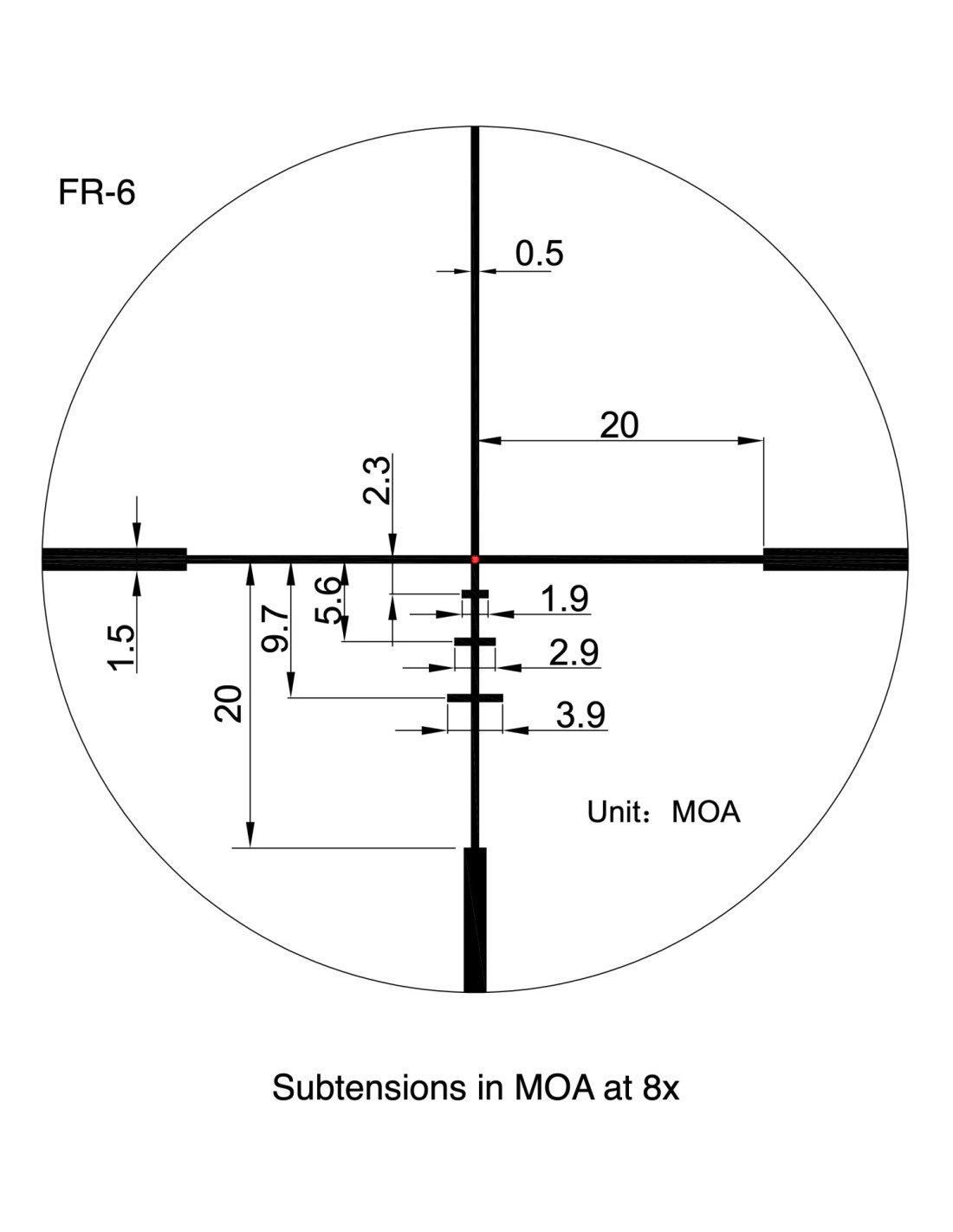 - Réticule : FR-6 à fibre optique, point central très lumineux.