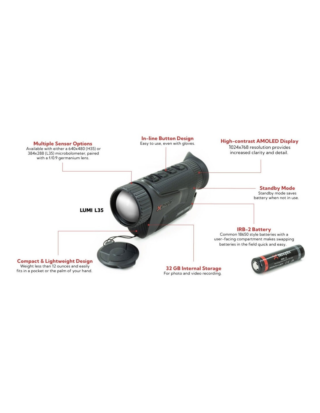 Compacte, performante et intuitive, la LUMI L35 est une solution idéale pour l’observation thermique en mobilité, offrant une excellente qualité d’image et une grande polyvalence dans toutes les conditions.