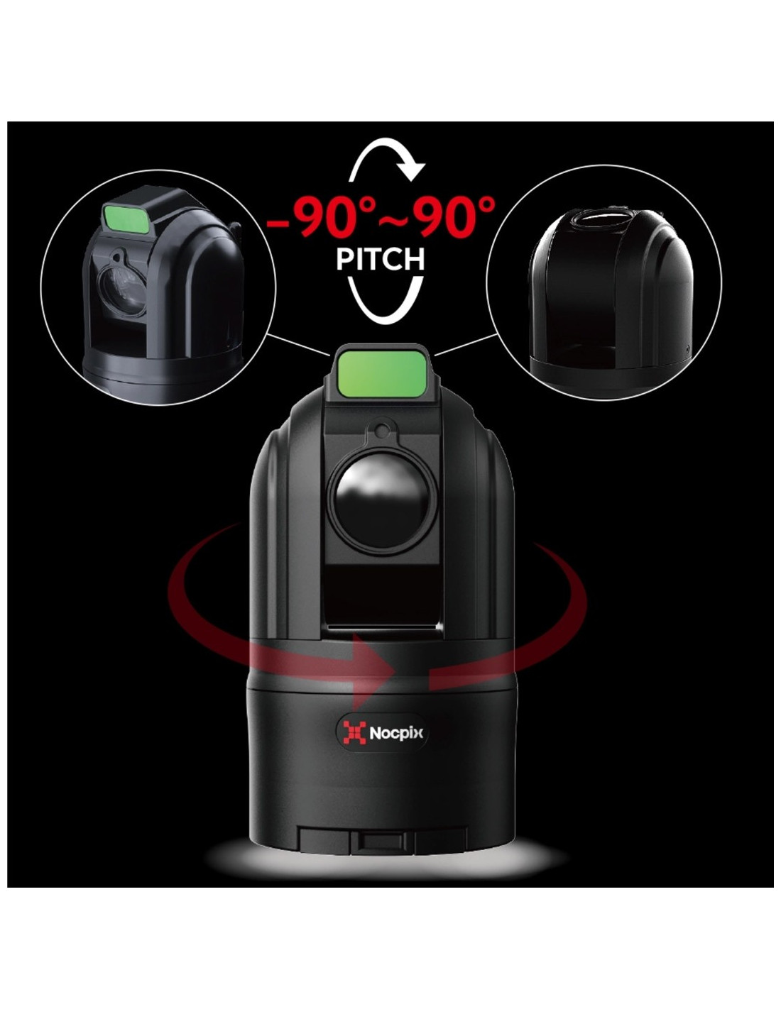 - Rotation panoramique 360° et inclinaison -90° à +90° : couverture complète avec quasi aucun angle mort
