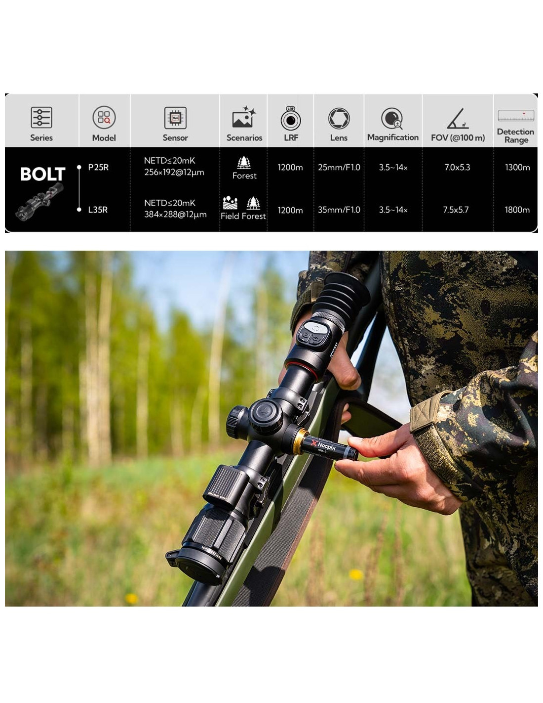 Compacte, robuste et complète, la BOLT P25R est une lunette thermique idéale pour débuter ou progresser en chasse, en offrant une combinaison optimale de précision, autonomie et simplicité d’utilisation.