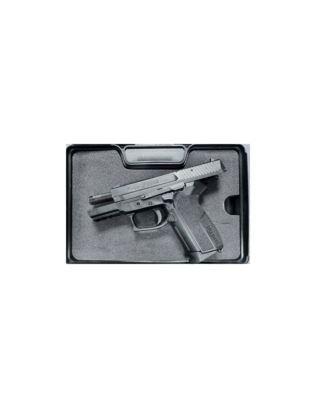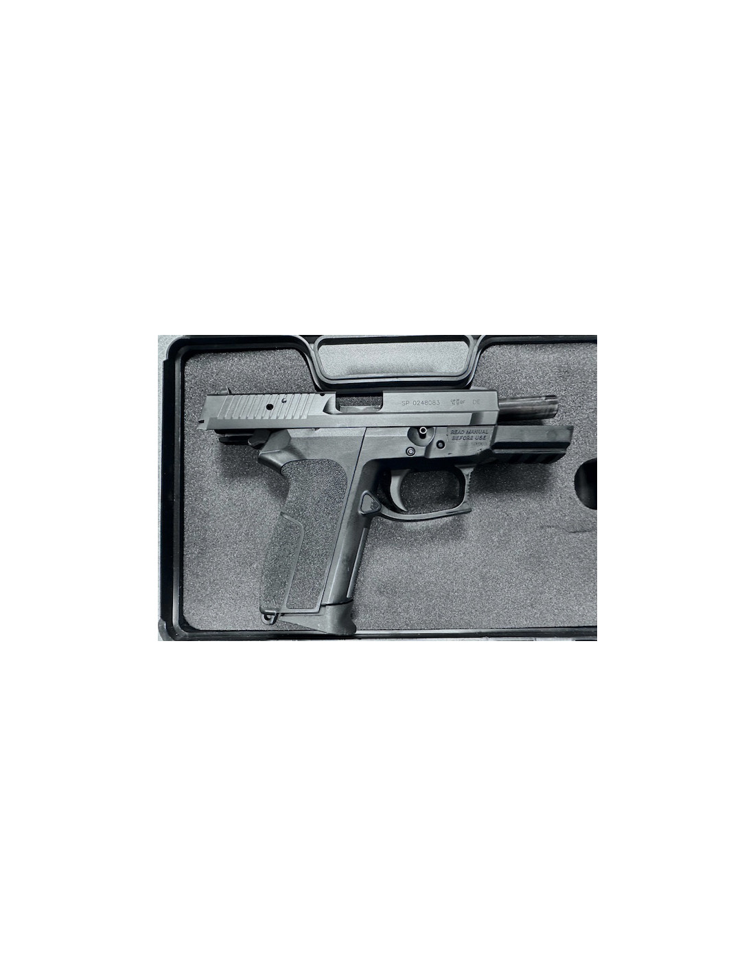 Pistolet SIG SAUER SP2022, calibre 9 mm. Modèle polyvalent issu d’une lignée en cours d'utilisation par les forces de l'ordre (Police Nationale, Gendarmerie, Douanes…), il combine construction robuste, ergonomie moderne et sécurité d’emploi.