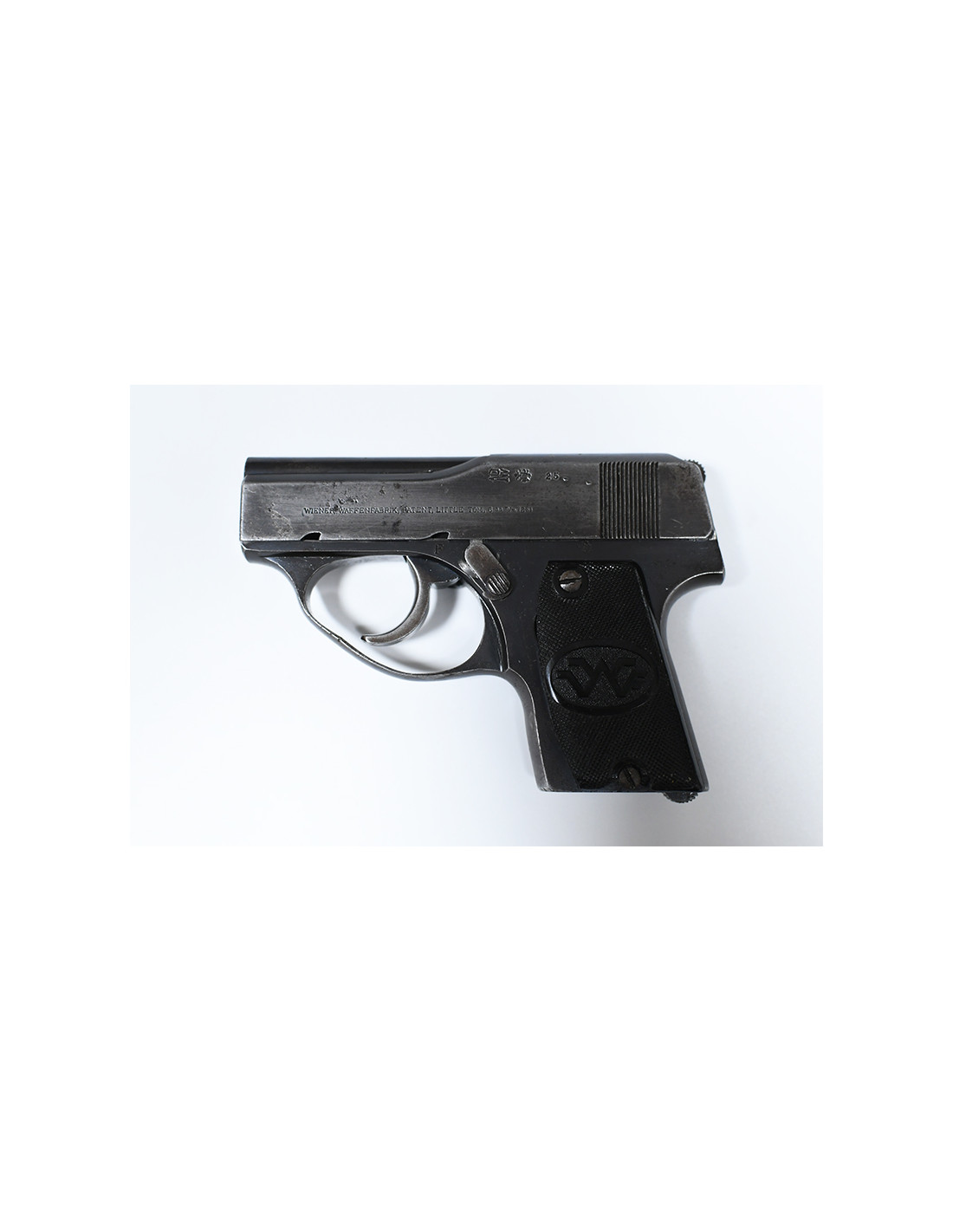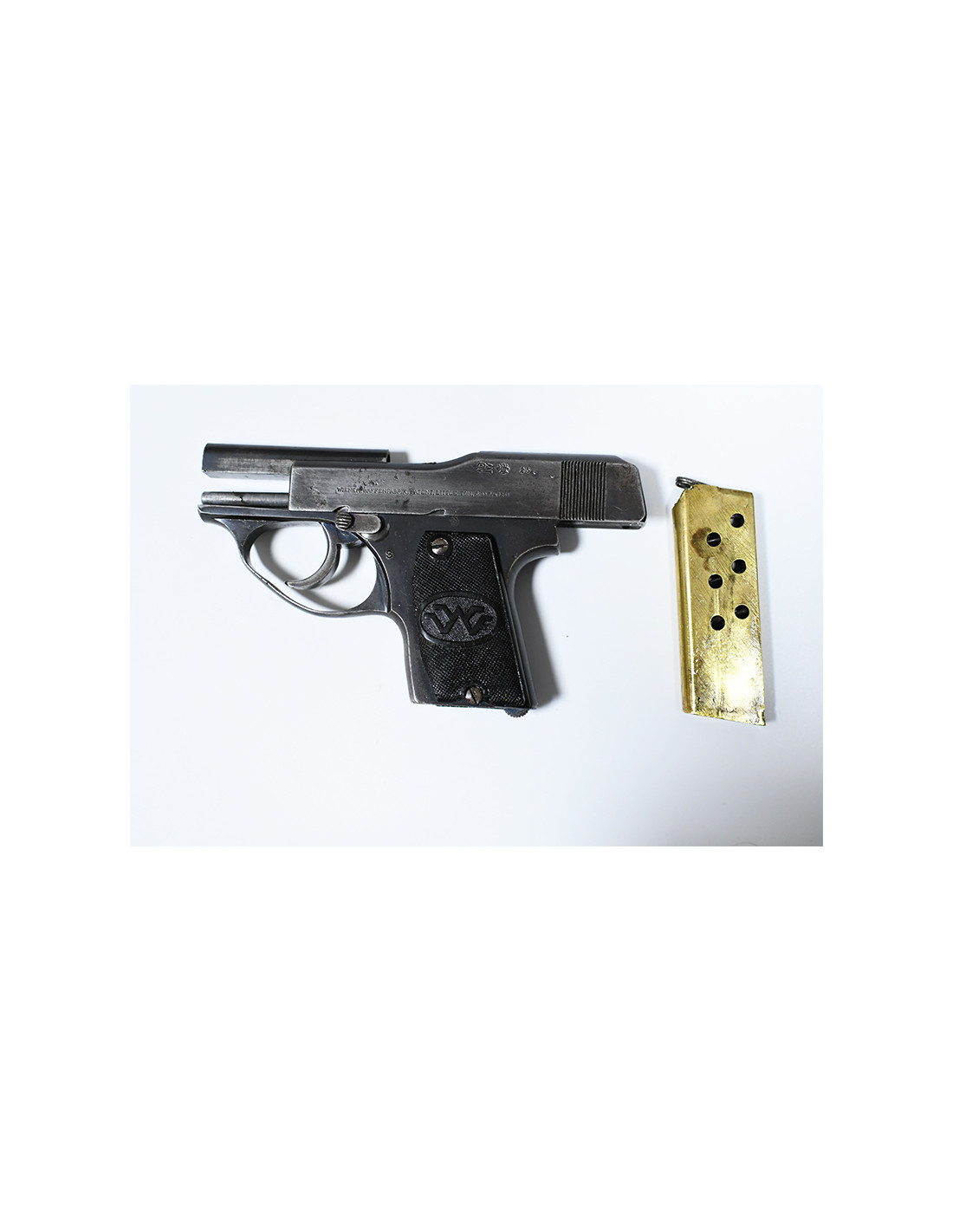 Ce pistolet Little Tom en calibre 6,35 mm, fabriqué par Wiener Waffenfabrik, est un modèle ancien datant de 1925. Il s’agit d’une arme peu courante, particulièrement intéressante pour les collectionneurs d’armes historiques de poing.
