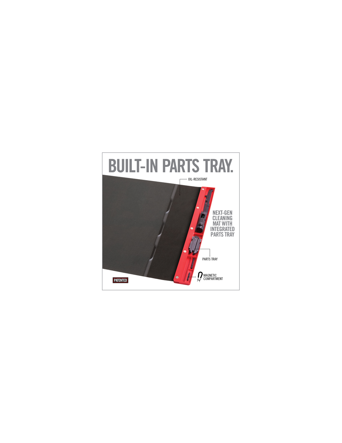 Le SMART MAT intègre également un bac de rangement avec plusieurs compartiments ainsi qu’une zone aimantée, idéale pour éviter la perte de petites pièces telles que vis, ressorts ou axes lors du démontage.