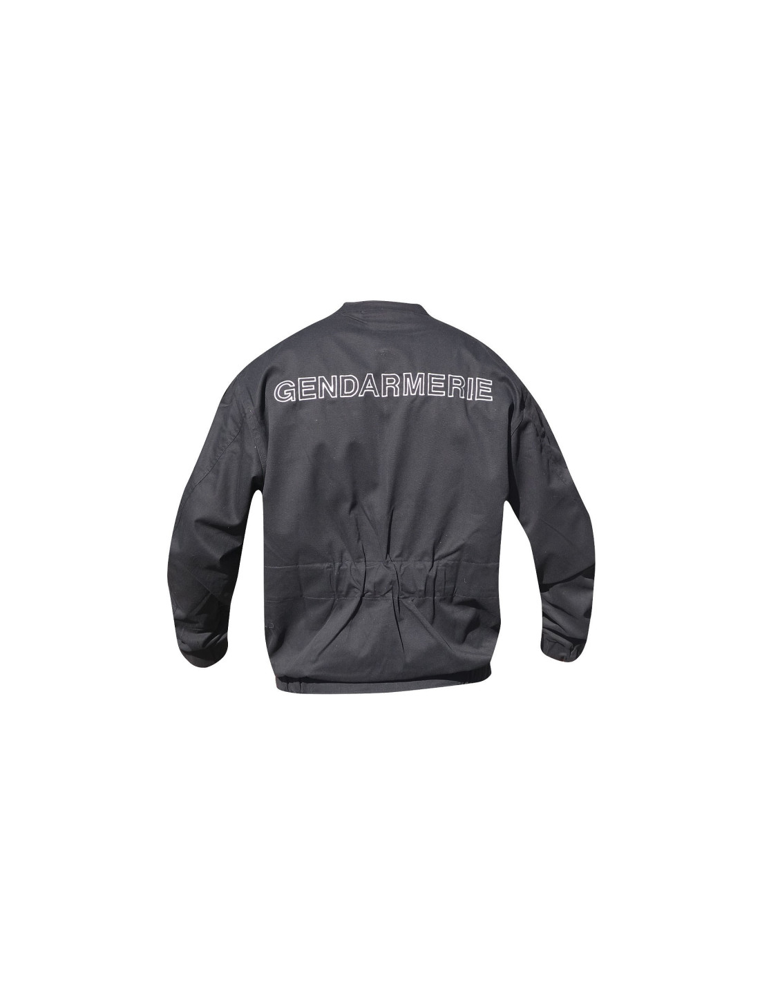 - Identification : Broderie GENDARMERIE blanche sur la poitrine et au dos (dimensions 37 cm × 3,9 cm).